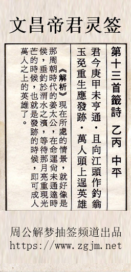 文昌帝君灵签第十三签:乙丙中平