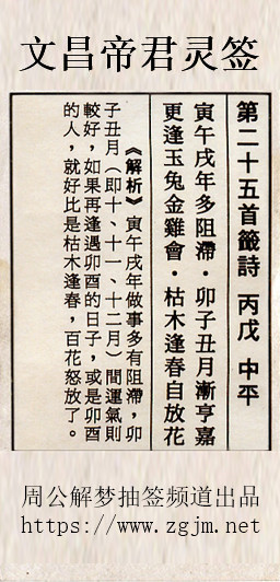 文昌帝君灵签第二十五签:丙戌中平