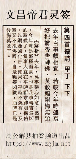 文昌帝君灵签第四签:甲丁下下
