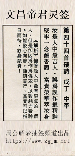 文昌帝君灵签第四十四签:戊丁中平