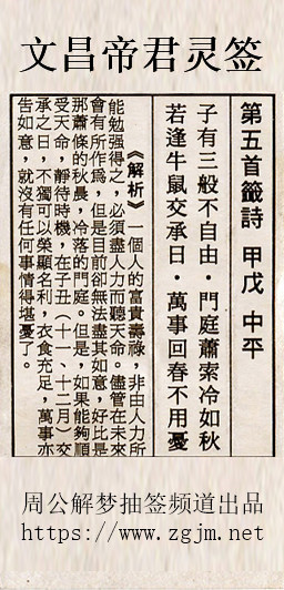 文昌帝君灵签第五签:甲戊中平