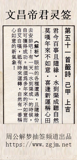 文昌帝君灵签第五十一签:己甲上吉