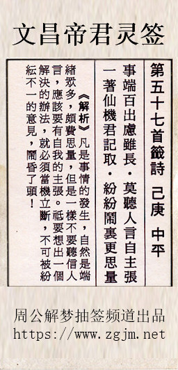 文昌帝君灵签第五十七签:己庚中平