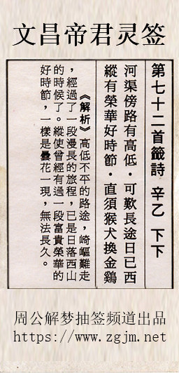 文昌帝君灵签第七十二签:辛乙下下