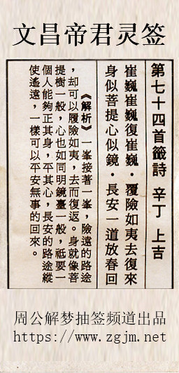 文昌帝君灵签第七十四签:辛丁上吉