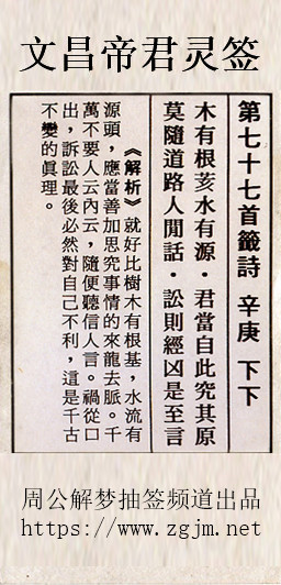 文昌帝君灵签第七十七签:辛庚下下