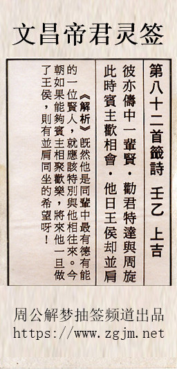 文昌帝君灵签第八十二签:壬乙上吉