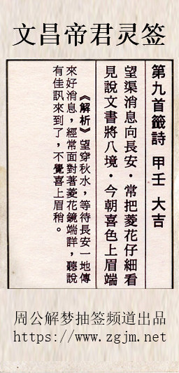 文昌帝君灵签第九签:甲壬大吉
