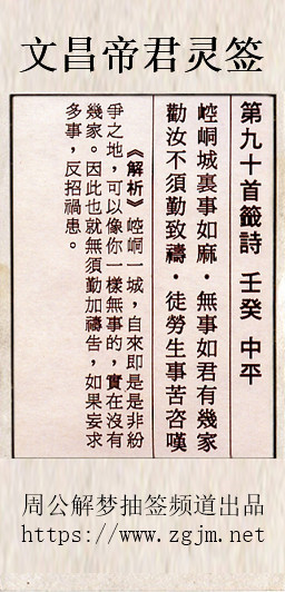 文昌帝君灵签第九十签:壬癸中平