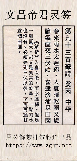 文昌帝君灵签第九十三签:癸丙中平