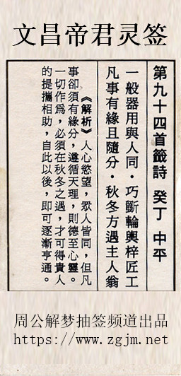 文昌帝君灵签第九十四签:癸丁中平
