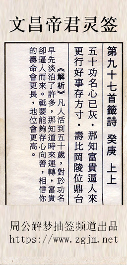 文昌帝君灵签第九十七签:癸庚上上