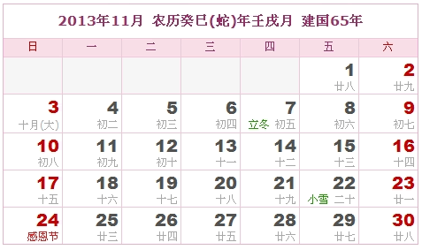 2013年11月 农历癸巳(蛇)年壬戌月 建国65年