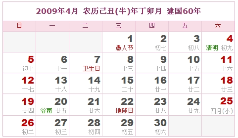 2009年4月 农历己丑(牛)年丁卯月 建国60年