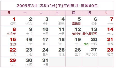 2009年3月 农历己丑(牛)年丙寅月 建国60年
