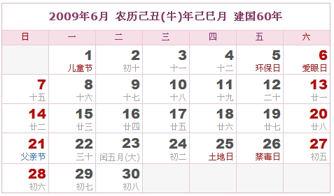2009年6月 农历己丑(牛)年己巳月 建国60年