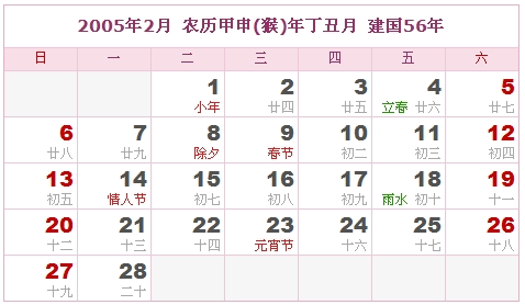 2005年2月 农历甲申(猴)年丁丑月 建国56年