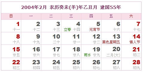 2004年2月 农历癸未(羊)年乙丑月 建国55年