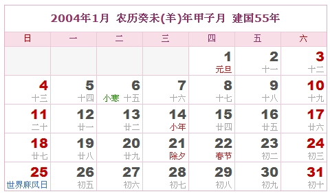 2004年1月 农历癸未(羊)年甲子月 建国55年
