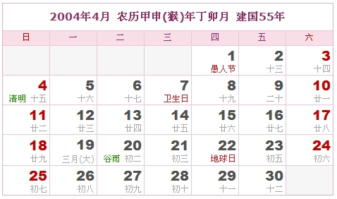 2004年4月 农历甲申(猴)年丁卯月 建国55年