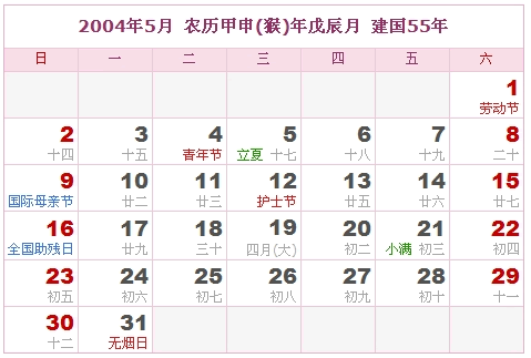 2004年5月 农历甲申(猴)年戊辰月 建国55年