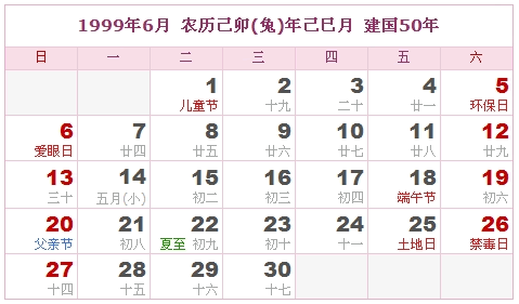 1999年6月 农历己卯(兔)年己巳月 建国50年