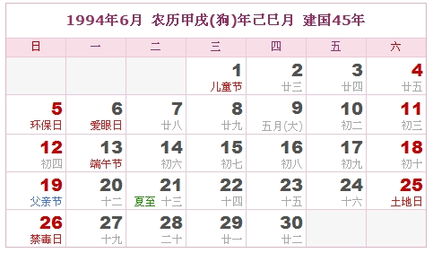 1994年6月 农历甲戌(狗)年己巳月 建国45年