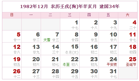 1982年12月 农历壬戌(狗)年辛亥月 建国34年