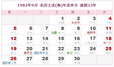 1982年9月 农历壬戌(狗)年戊申月 建国33年