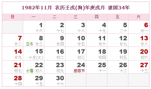 1982年11月 农历壬戌(狗)年庚戌月 建国34年